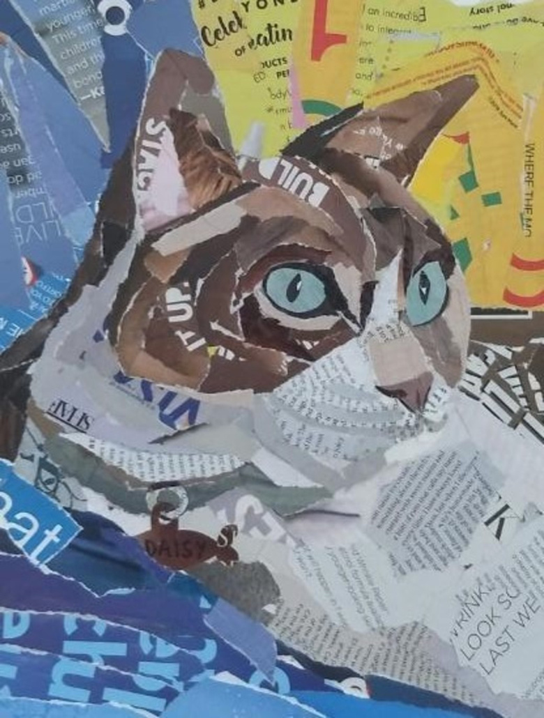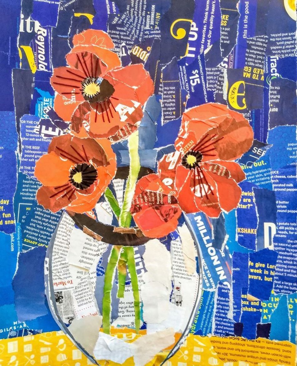When I’m not teaching my elementary students in the classroom, you can find me surrounded by magazines, glue, and yarn creating paper collages at my kitchen table.